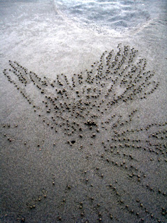 或是沙灘上螃蟹挖洞而聚集成畫的小沙粒。